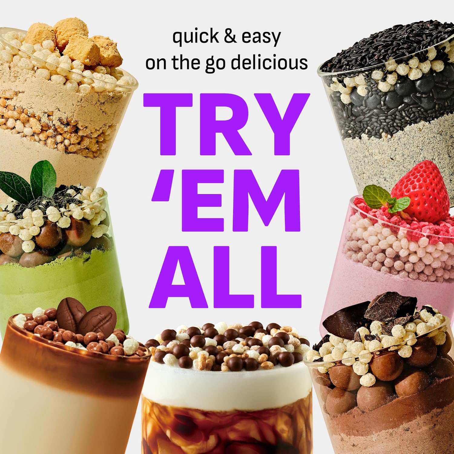 ● AVAILABLE IN 7 FLAVORS & 2 CONVENIENT SIZES: Choose from Black Sesame, Dolce Latte, Matcha, Grain, Chocolate, Strawberry, and Milk Tea—available in both 7-serving pouches and 14-serving bulk tubs to fit any lifestyle.