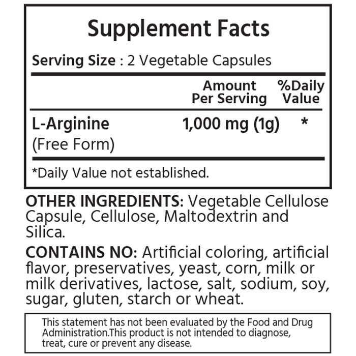 L-arginine is an amino acid that helps the body produce proteins. The body uses arginine to make nitric oxide which can cause blood vessels to open wide for improved blood flow. Improved blood flow may assist with chest pain, high blood pressure, cramping, and erectile dysfunction and help stimulate insulin release.